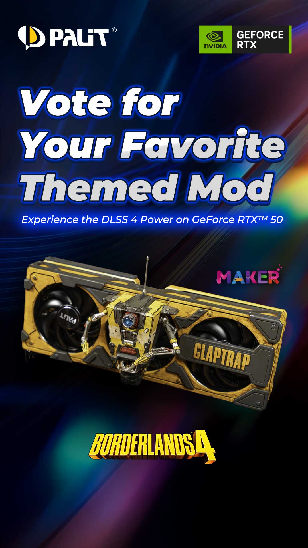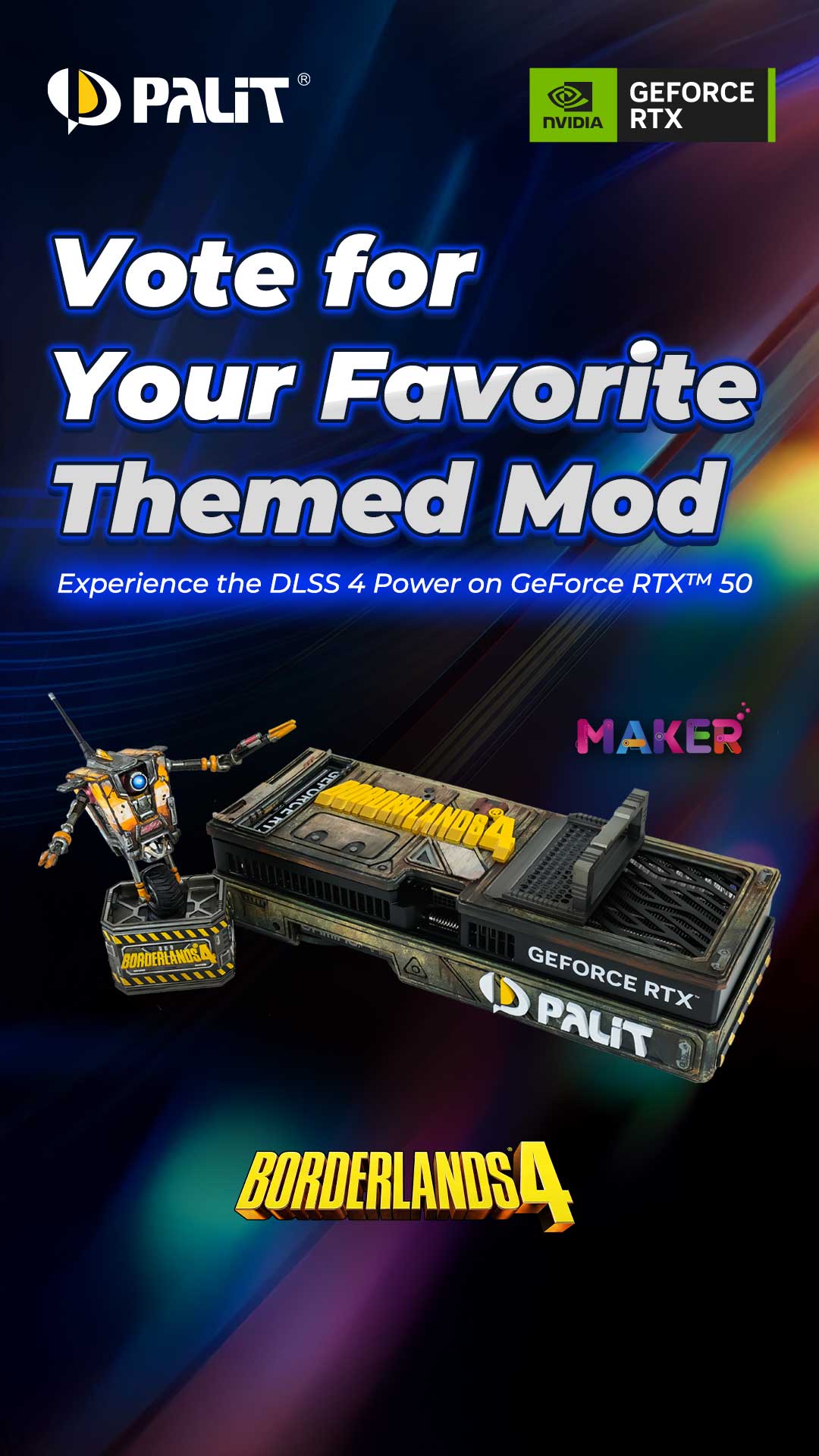 The three custom Borderlands 4 GeForce RTX™ 50 GPU mods were realized using the creative freedom of PALIT Maker support. Comment under the Instagram post of the mod you like the most and get the chance to win amazing prizes!