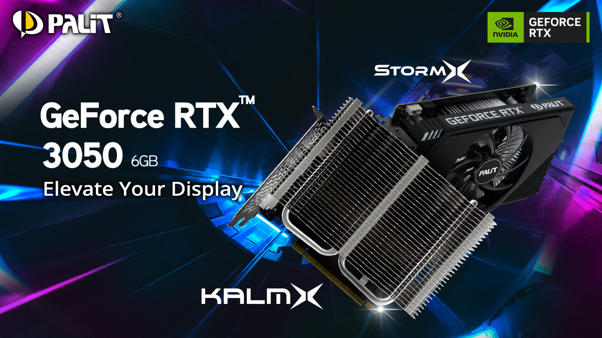 Palit Microsystems Ltd., a leading graphics card manufacturer, proudly announces the NVIDIA® GeForce RTX™ 3050 6GB KalmX and StormX Series graphics cards.