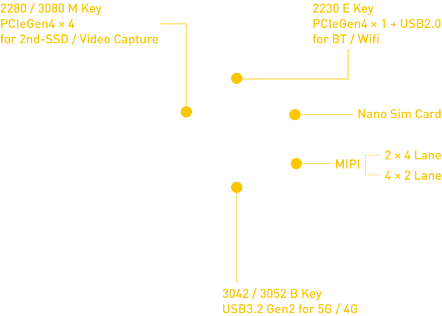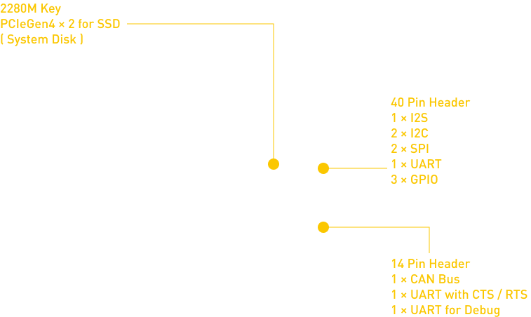 Explore endless possibilities with Pandora, a system engineered for expansion and integration. Equipped with AUX DC power, 4 × M.2 slots supporting SSD, WiFi, and 5G/LTE modules, it seamlessly accommodates advanced connectivity needs. With MIPI support for sensor images, UART, and CAN bus for precise control, Pandora is not just a solution — it's a gateway to innovative edge AI and computing solutions.