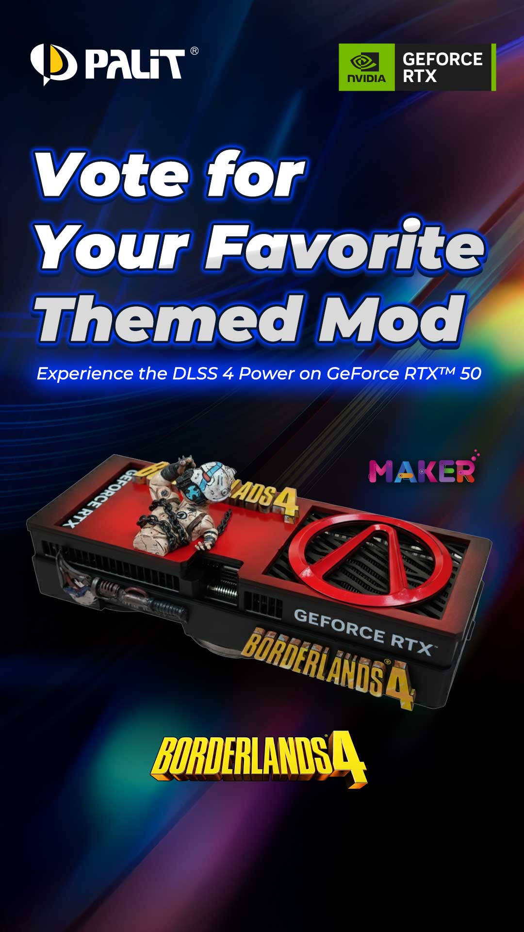 The three custom Borderlands 4 GeForce RTX™ 50 GPU mods were realized using the creative freedom of PALIT Maker support. Comment under the Instagram post of the mod you like the most and get the chance to win amazing prizes!