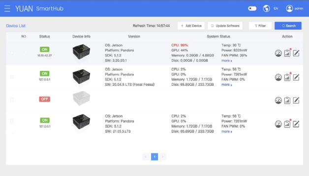 SmartHub is an device management platform which enables remote management of connected devices and provides centralized management capabilities for Pandora. It ensures secure and contactless mass device onboarding, real-time hardware and software status monitoring and management, and remote diagnostics to save time and money. The platform also offers automated alerts and real-time operations based on device data and predictive analytics. Additionally, it includes container management for deploying, monitoring, and managing edge AI, as well as over the-air ( OTA ) upgrades for device hardware and software.