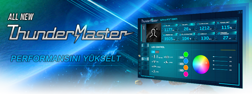 Palit’in ThunderMaster yazılımı, önceki sürüme göre baştan aşağı bir güncelleme aldı. Artık daha kullanıcı dostu arayüzün yanı sıra daha fazla kişiselleştirilmiş ayara sahip. ThunderMaster ile overclock ayarlarından fan hızına, RGB efektine kadar ekran kartınızı kontrol edebilirsiniz. Ayrıca ThunderMaster aracı ile ekran kartı durumunu da izleyebilirsiniz.